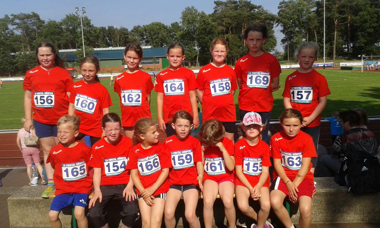 Bei strahlendem Sonnenschein nahmen 14 Kinder unserer Leichtathletik-Abteilung an den Kreismeisterschaften im Dreikampf teil, die am 17. Juli in Dörpen stattfanden. Dabei absolvierten sie einen 50m-Lauf und je drei Versuche im Weitsprung und im Schlagball. Die Kinder erlebten einen großen Wettkampf mit knapp 300 Sportlern und hatten viel Spaß! Am Ende gingen sie mit einem vierten und einem sechsten Platz nach Hause!